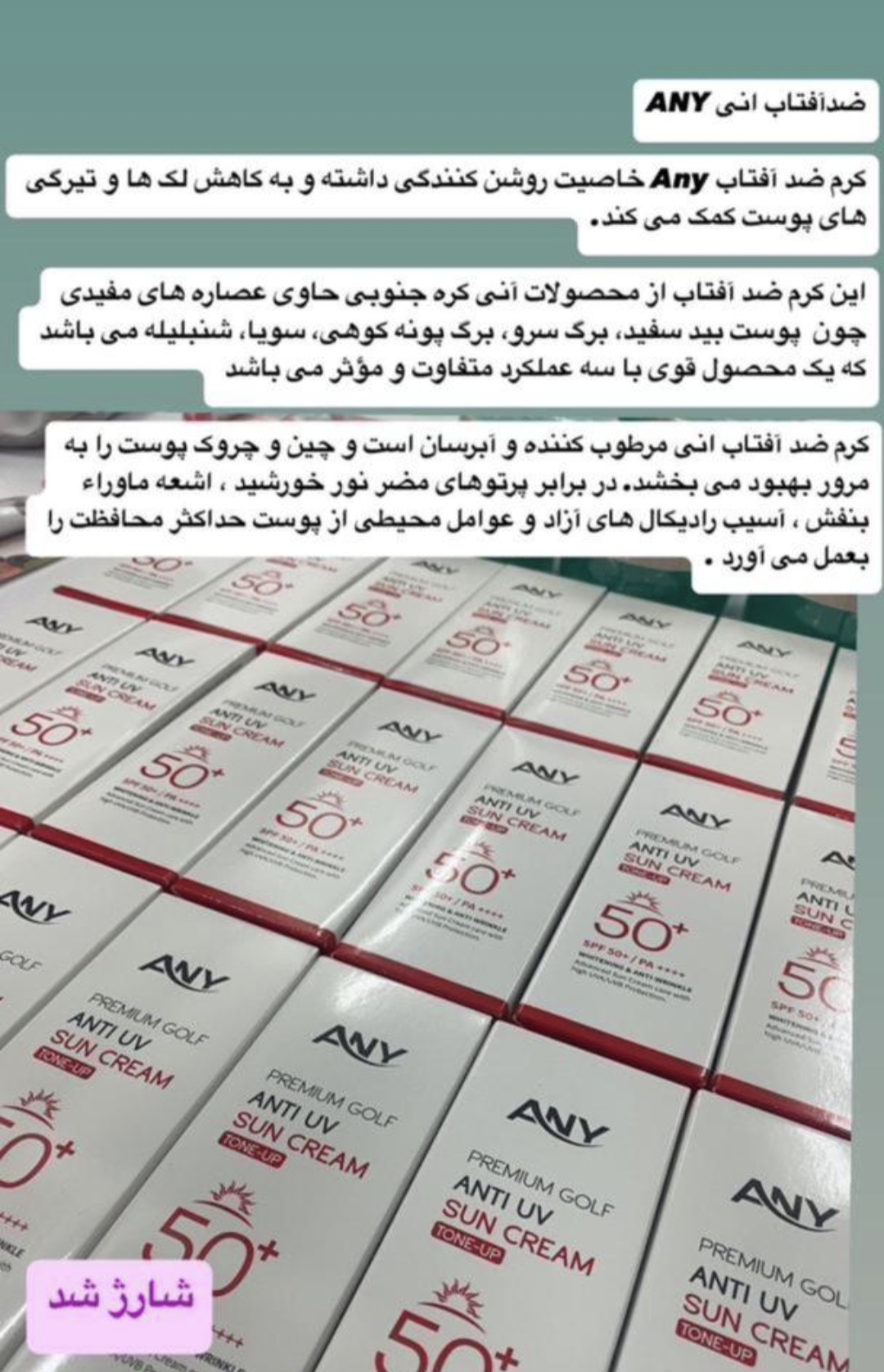 کرم ضدآفتاب آنی SPF50 مناسب انواع پوست 60 میل